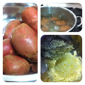 Far bollire le patate con la buccia. Una volta cotte, sbucciare e schiacciare ancora bollenti. Impastare con i restanti ingredienti e, una volta che l’impasto sarà omogeneo, passare a fare i gnocchi. Ottenere dei tondini di 1 cm di diametro dall’impasto e tagliarli con una spatola. Infarinarli bene, quindi arrotondarli facendoli “girare” in un setaccio.