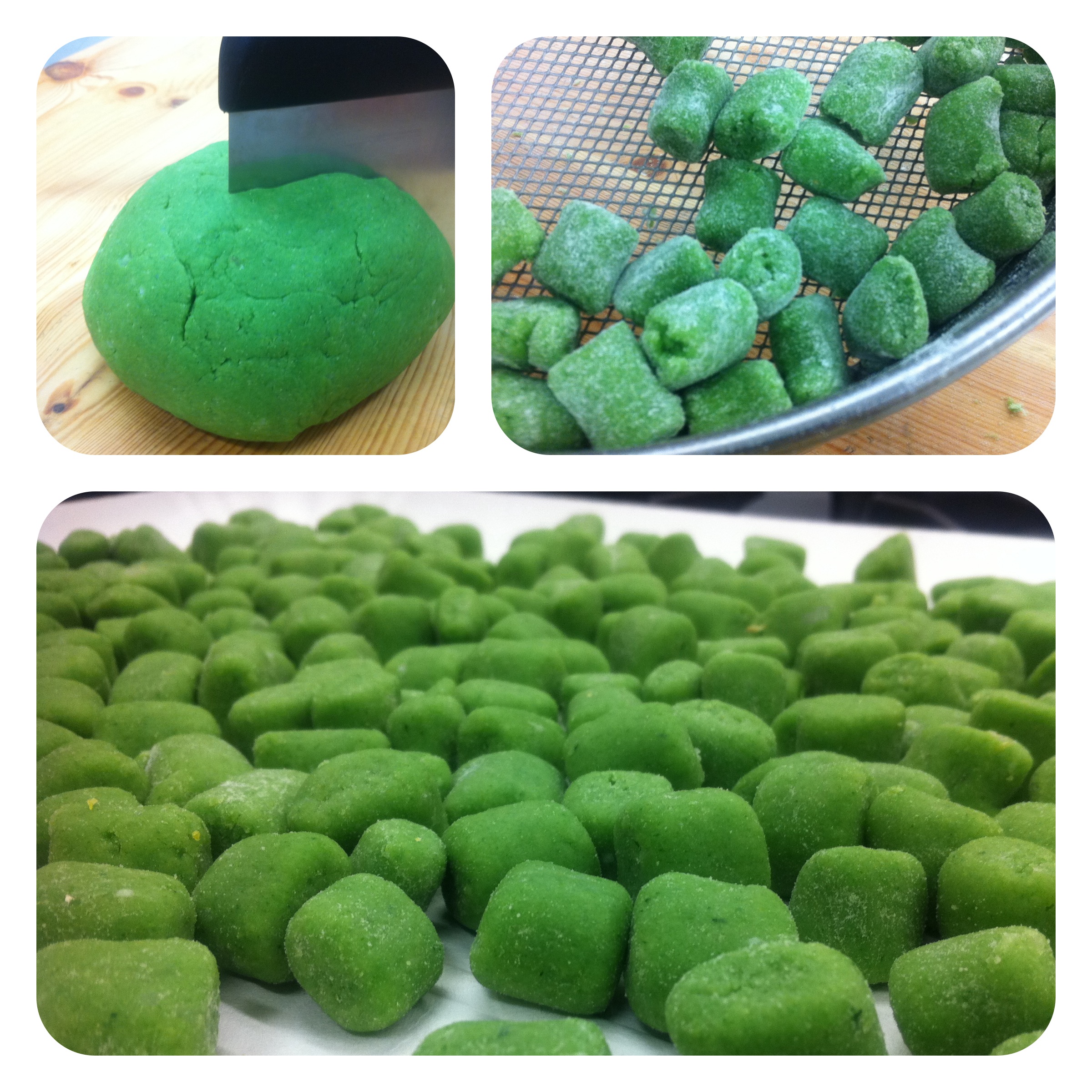 C’è qualcosa di differente però in questa preparazione, ho voluto provare, per la prima volta, il mio leggendario verde brillante nell’impasto degli gnocchi. Il segreto per ottenere un verde così è Cuocere in acqua salata per pochissimo tempo degli spinaci di ottima qualità, non colti da troppo tempo (quindi ben carichi di clorofilla) scolarli velocemente e gettarli in acqua fredda e ghiaccio per lo shock termico che bloccherà il verde brillante. Non mi dilungo oltre e vi posto la ricetta…