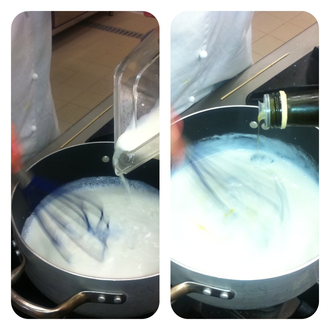 Sbollentare velocemente gli spinaci in acqua salata, raffreddarli in acqua e ghiaccio e scolarli bene. Frullare con olio extravergine.