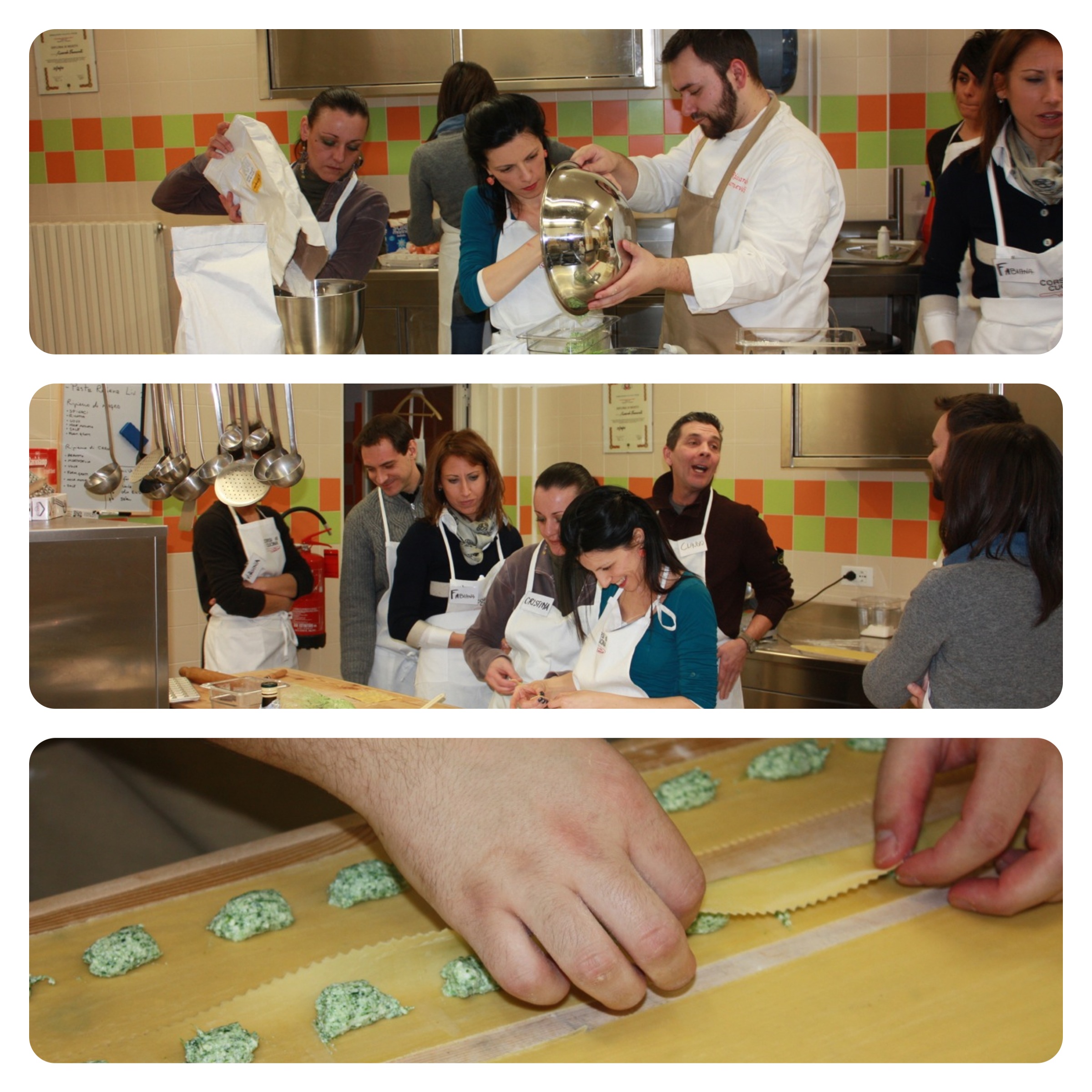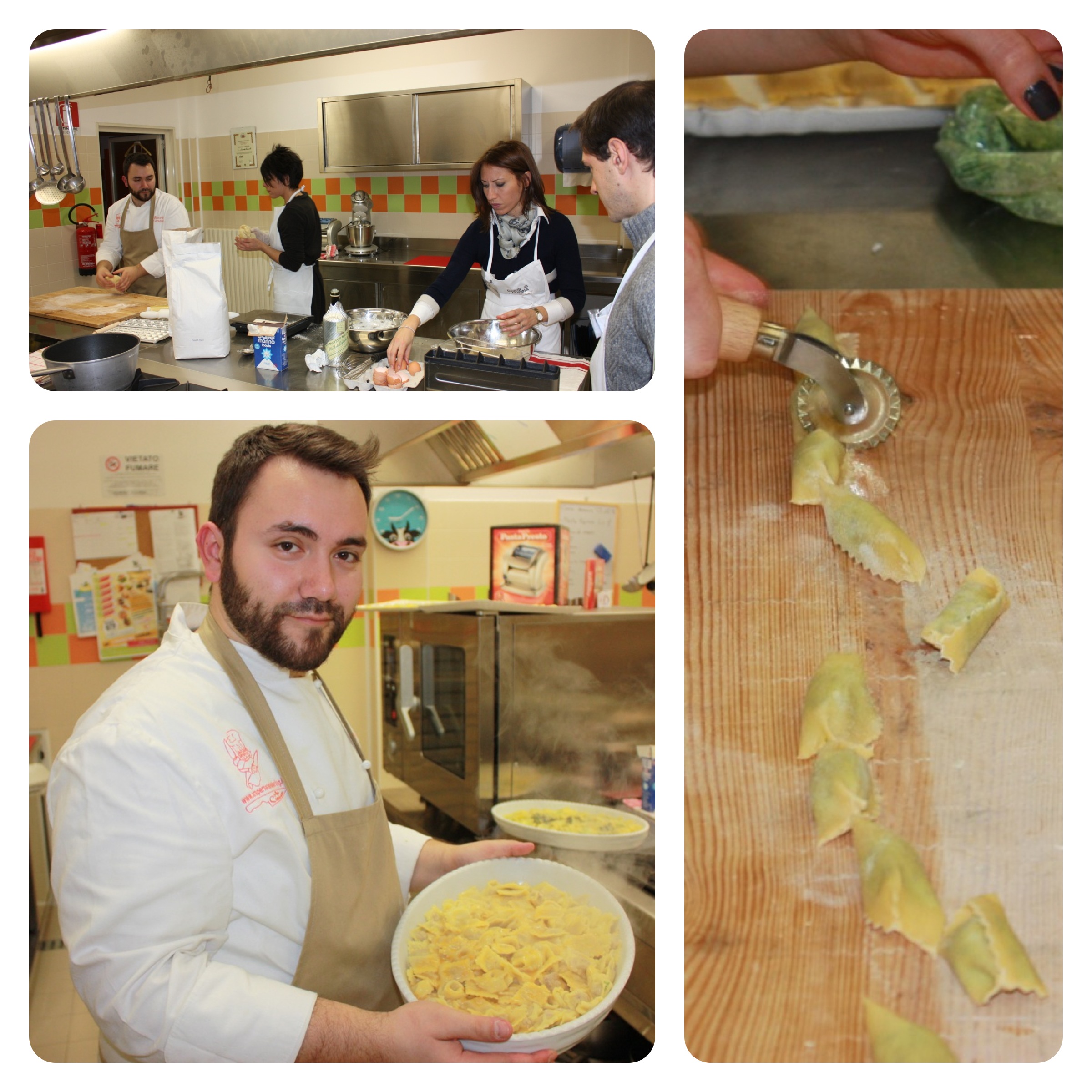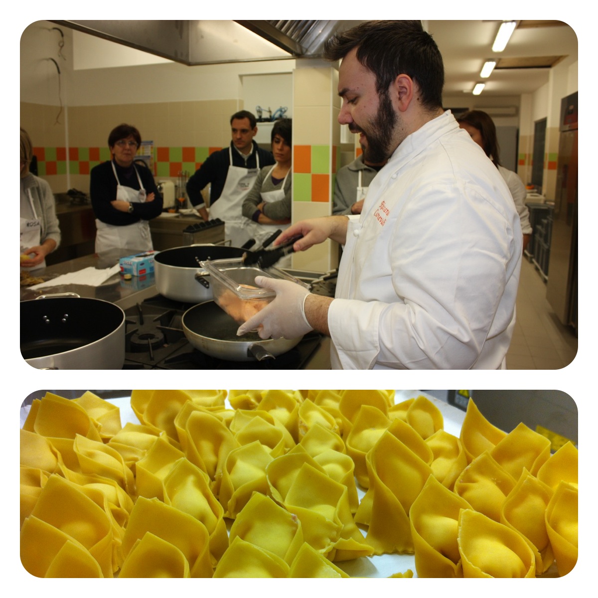 Proseguono i miei corsi di cucina… (corsi che credo non avranno più fine dato il grande successo che riscuotono), questa settimana abbiamo fatto pasta ripiena 1 e 2 e “a panino” nel mezzo, abbiamo affrontato una serata di pesce facile e veloce! In pasta ripiena 1 abbiamo fatto ripieno di arrosto e mortadella e ripieno di magro (ricotta e spinaci) con varie chiusure diverse. In pasta ripiena 2 invece abbiamo fatto un ripieno al salmone e uno con sola mortadella, cremosa, profumata… Mercoledì abbiamo poi affrontato i fondamentali sul pesce, con cartoccio, risotto, bisque, sformatino… il tutto partendo dal pesce acquistato, pulendo, sfilettando, ecc ecc. Le ore passano velocemente, le sessioni sono sempre molto intense e tutti lavorano in prima persona sotto il mio controllo. Il tutto parte con un aperitivo di benvenuto in cui offro ai corsisti fingerfood e affettato, con un calice di bollicine, nel frattempo illustro cosa andremo a trattare durante la serata.