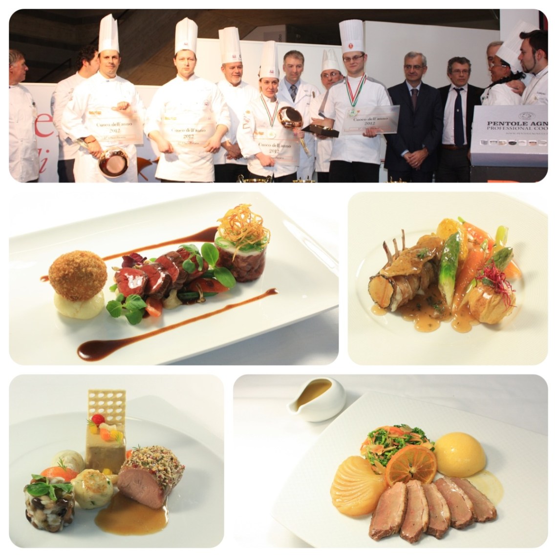 A vincere il titolo di “Cuoco dell’Anno 2012” è stato il giovane chef del Lussemburgo Ben Weber con un piatto di manzo in 3 cotture. Secondo Cristian Spagnoli dell’associazione cuochi Brescia e terzi parimerito Domenico De Gioia dei cuochi baresi e Renata Laria dei cuochi di Pavia.