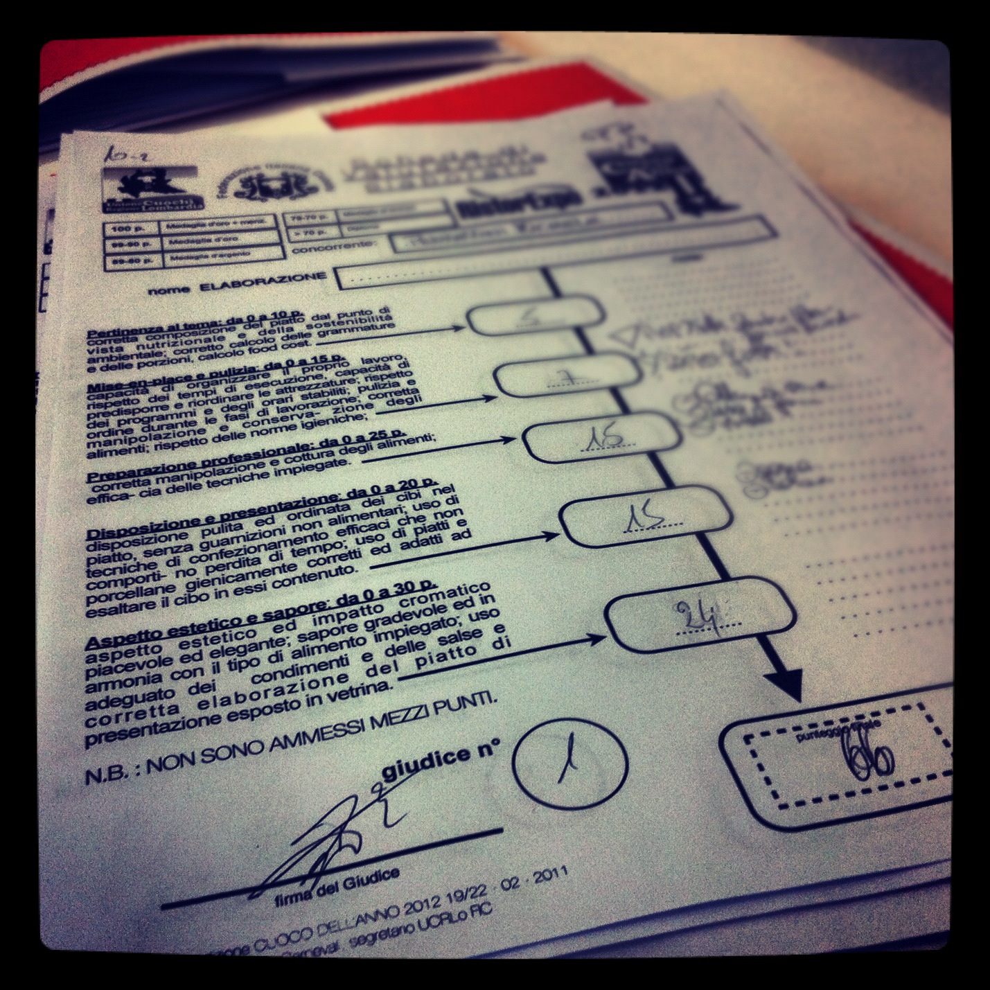 Eccomi reduce dalla sfacchinata delle gare del cuoco dell’anno 2012!! Come ho scritto nel post precedente io NON partecipo alle gare di cucina ma vi lavoro nelle giurie. Quest’anno è andato tutto liscio. La giuria è stata precisa e puntuale e non ho dovuto scaprettare più di tanto…