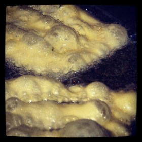 Per finire su gentile richiesta, vi do la ricetta delle Chiacchere vecchia di generazioni e modificata qua e la nel tempo! Vi premetto che io le chiacchere le faccio sottilissime e si sciolgono in bocca! fanno le bollicine e scrocchiano anche dopo 2 o 3 giorni che si sono fatte. L’importante è friggerle ad alta temperatura per far si che escano ben croccanti ed asciutte. ATTENZIONE però a non raggiungere il punto di fumo. Se fate fumare l’olio… potete buttarlo perché è diventato cancerogeno.Chiacchere di famiglia: