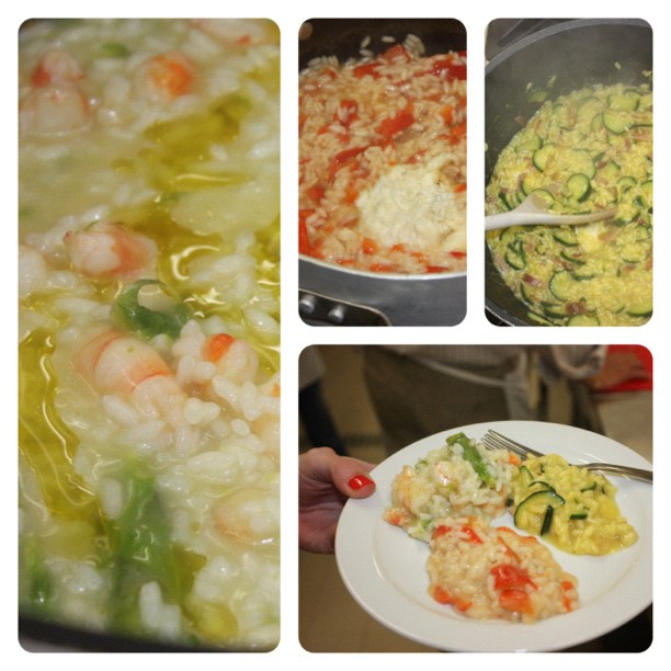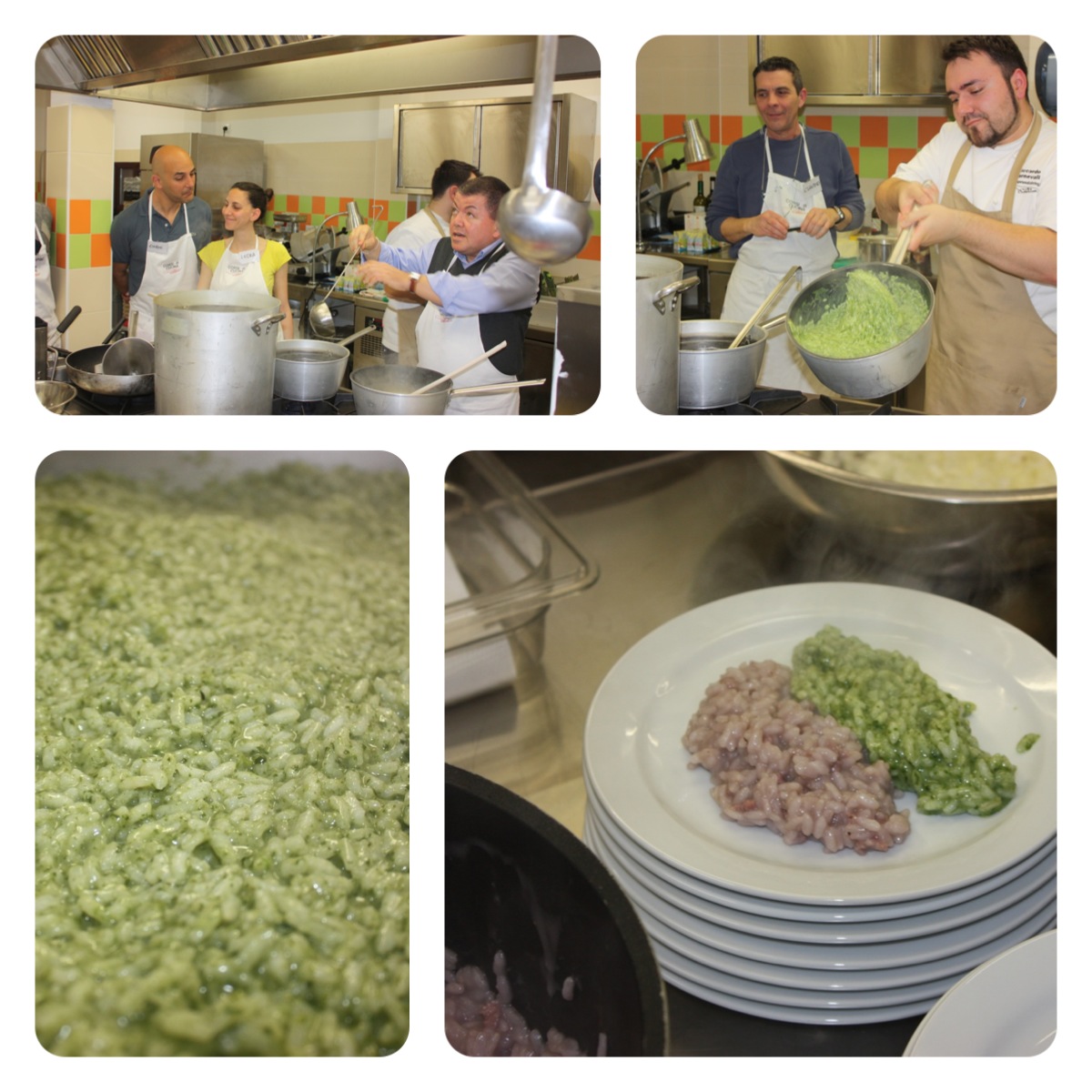 L’altra serata, quella “a tutto Riso”, è stata altrettanto movimentata! 10 tipi di risotto in 4 ore. All’arrivo, ogni allievo ha pescato un bigliettino con il risotto da realizzare, ed è partita la sfida a chi lo preparava meglio. Naturalmente ogni tanto intervenivo nel correggere e migliorare la tecnica di ogni allievo (altrimenti che corso sarebbe?!?). Sta di fatto che ogni mezz’ora uscivano 2 mandate di risotto ed è stato davvero un successo.