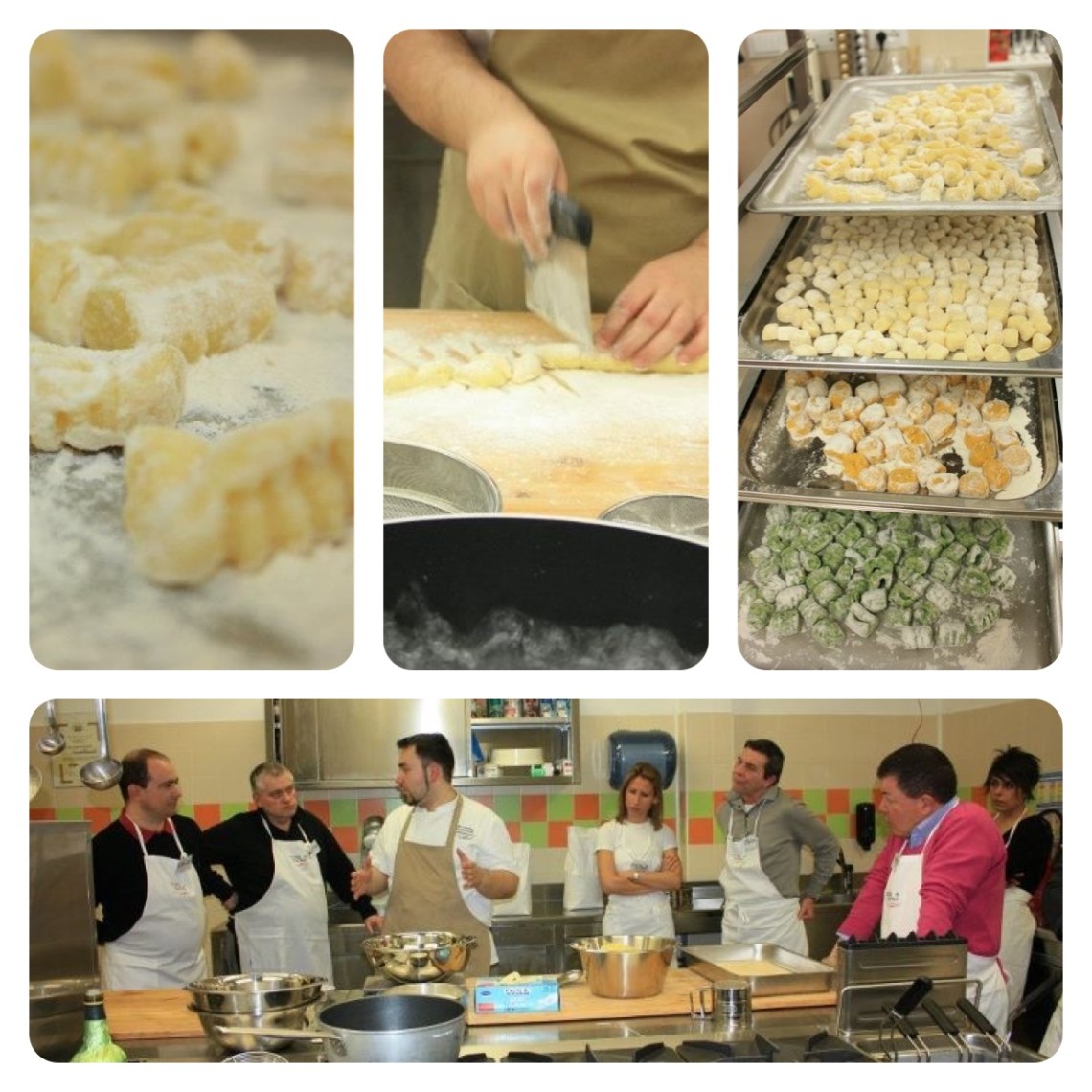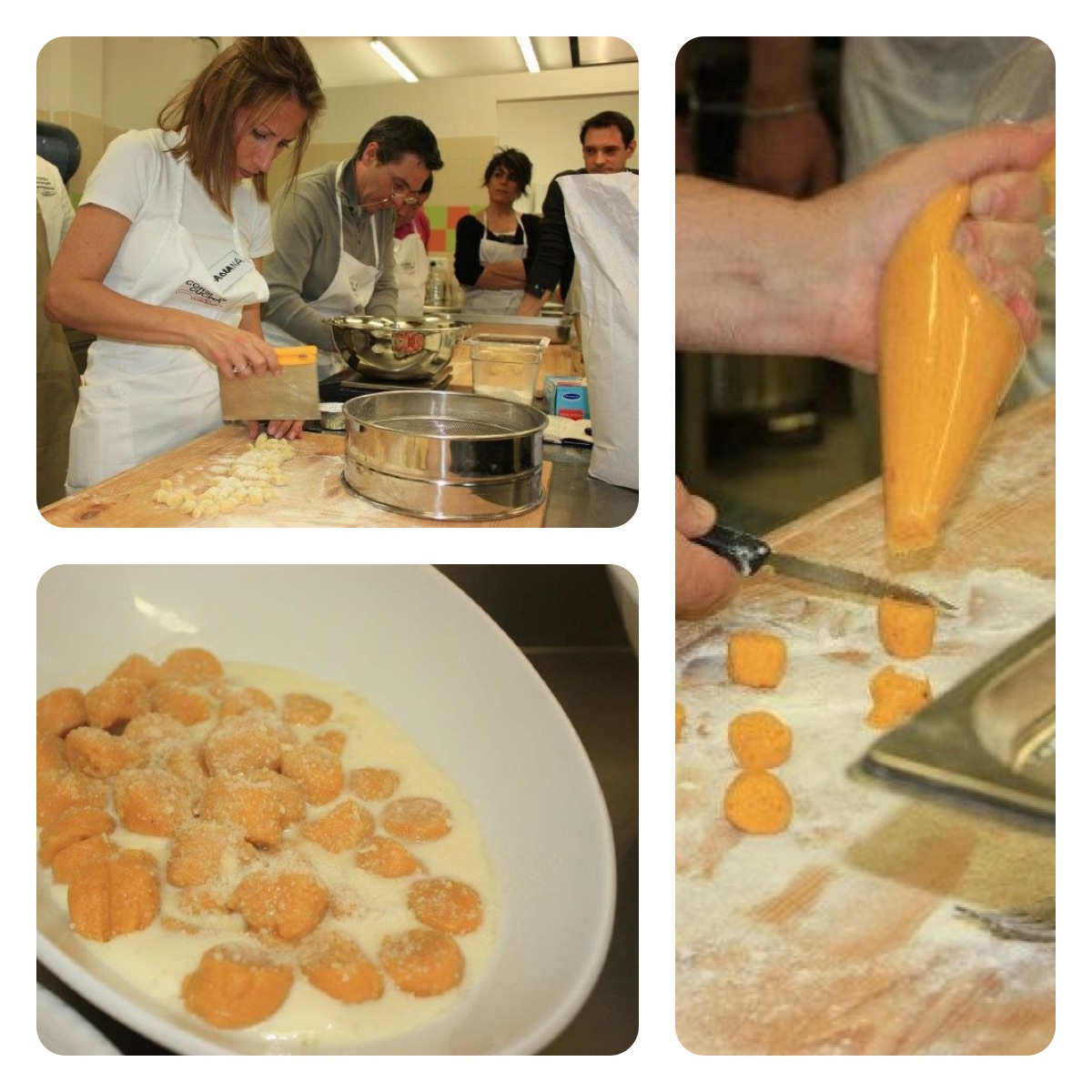 Prima della pausa di Pasqua, nel mio laboratorio di catering ho fatto due serate di corsi stupende! Un vero successo… La “serata Gnocchi” e la serata “A tutto Riso”. Non riesco neanche a dirvi quale abbia preferito perché entrambe sono state davvero apprezzate da tutti. Nella serata “gnocchi” abbiamo fatto 7 tipi diversi di impasto per gnocchi. Quelli classici, quegli agli spinaci, alla zucca, con ricotta, con ricotta senza patate, con pan grattato… Tante varianti per esplorare uno dei più famosi primi italiani di tutti i tempi. Gli allievi si sono divertiti tantissimo, la produzione è stata davvero massiccia!
