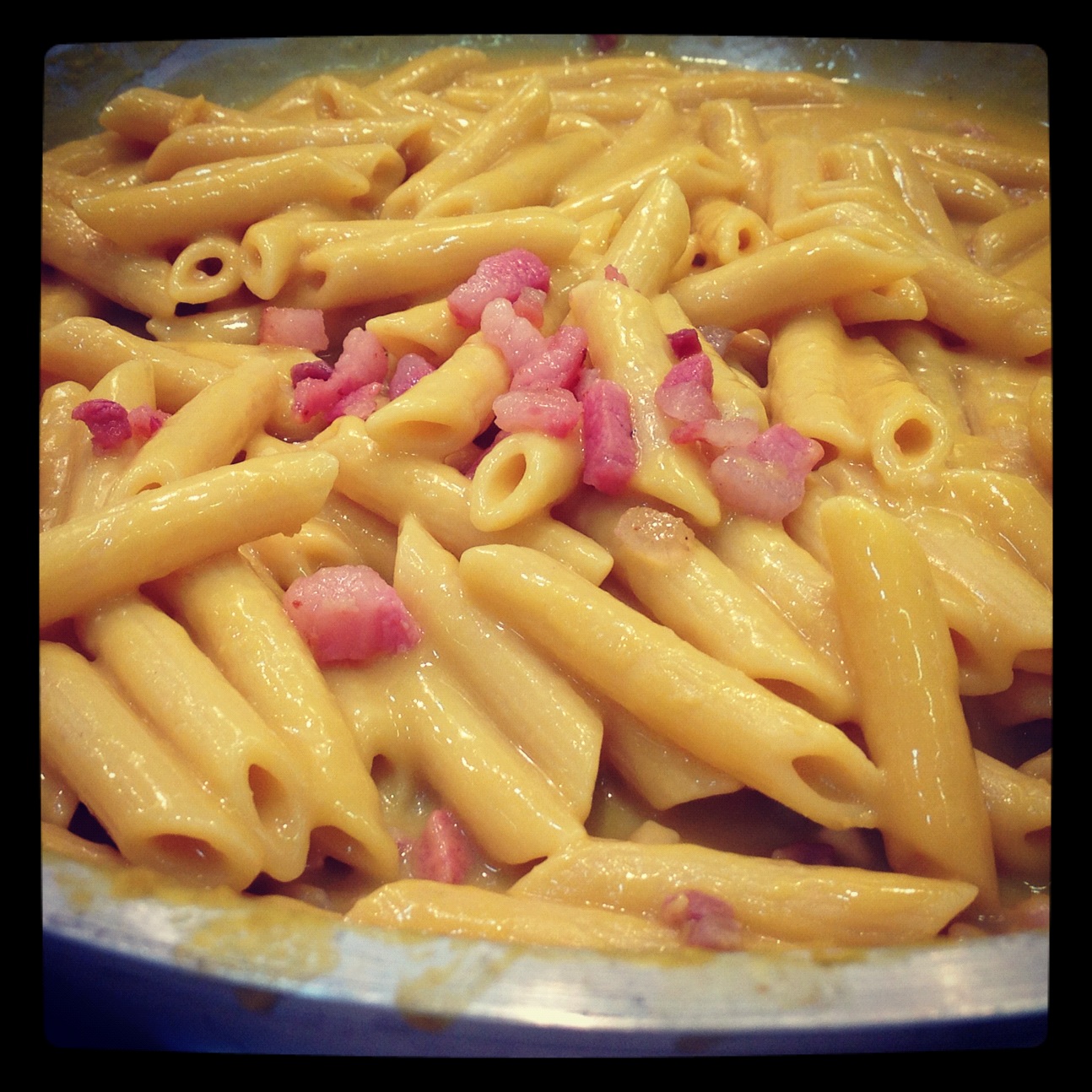 Ogni giorno ho preparato 2 salse diverse (soprattutto a base verdura) e ogni giorno uscivano centinaia di piatti di pasta (qui sotto i fusillotti con crema di piselli e pomodorini confit). La salsa più apprezzata (e sorprendente) è stata la mia FINTA CARBONARA. In pratica ho sostituito la parte grasso/proteica delle uova con i legumi e lo zafferano. Lo chef Enrico Derflingher, passato nello stand l’ha assaggiata dicendomi di averla fatta in altre occasioni, ma con la curcuma al posto dello zafferano. Trovo che lo zafferano metta invece più a proprio agio il commensale, dato che è un sapore più rassicurante.