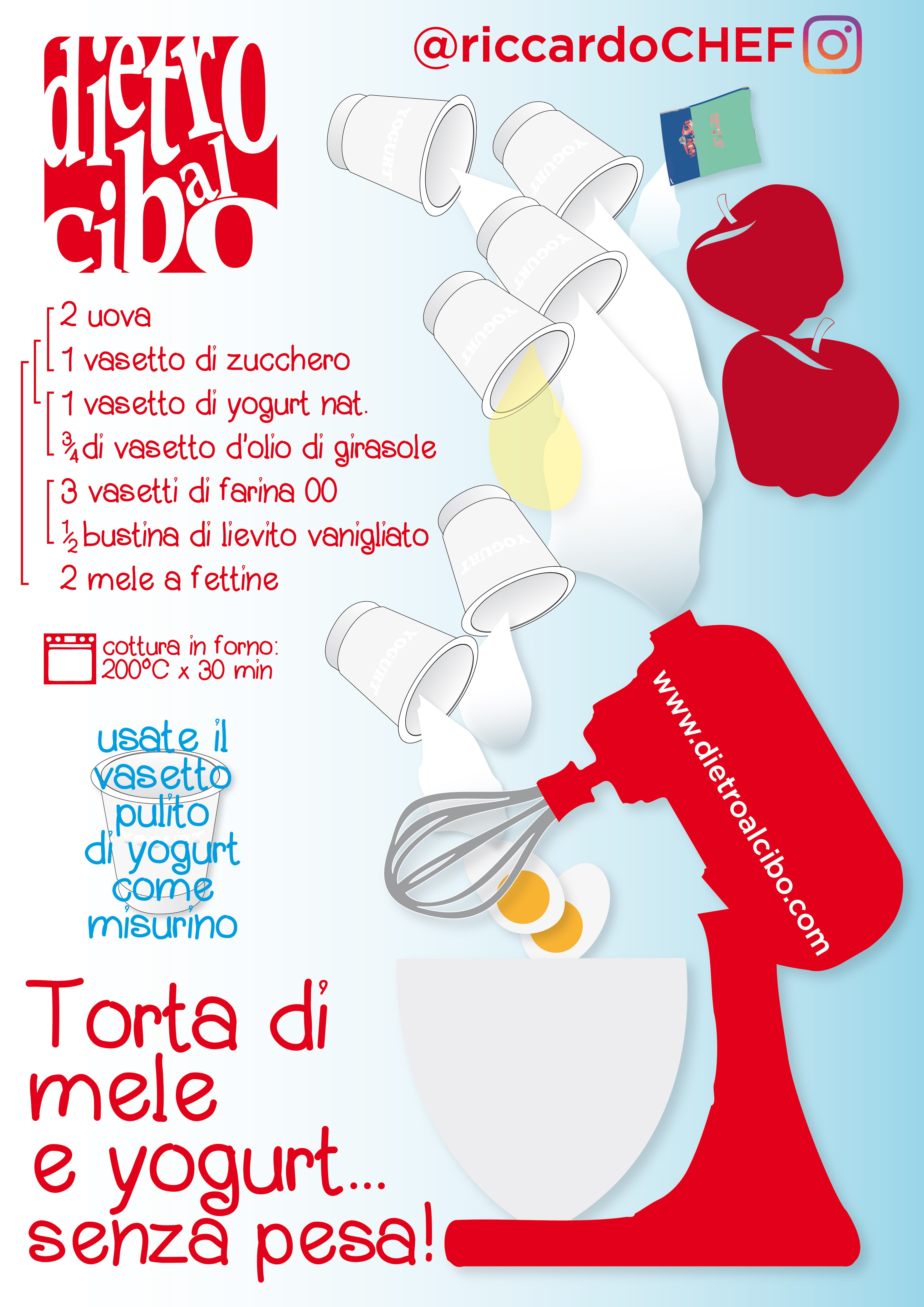 Quando aprite il frigo c’è sempre quel vasetto di yogurt naturale che vi fissa ricordandovi la dieta che non avete mai voglia di proseguire… Quel vasetto sarà utilissimo! non solo perchè il contenuto deve finire nel composto base della torta, ma il suo contenitore (vasetto da 125g) lavato ed asciugato sarà utilissimo!