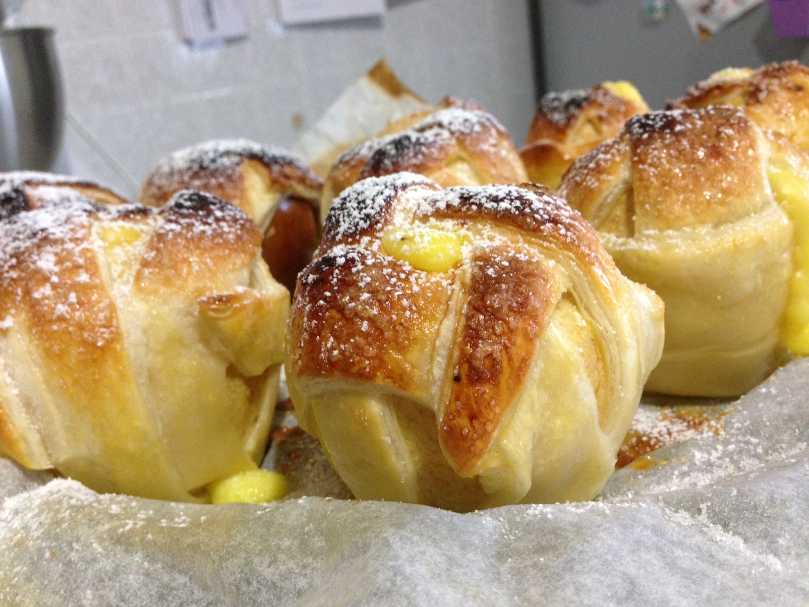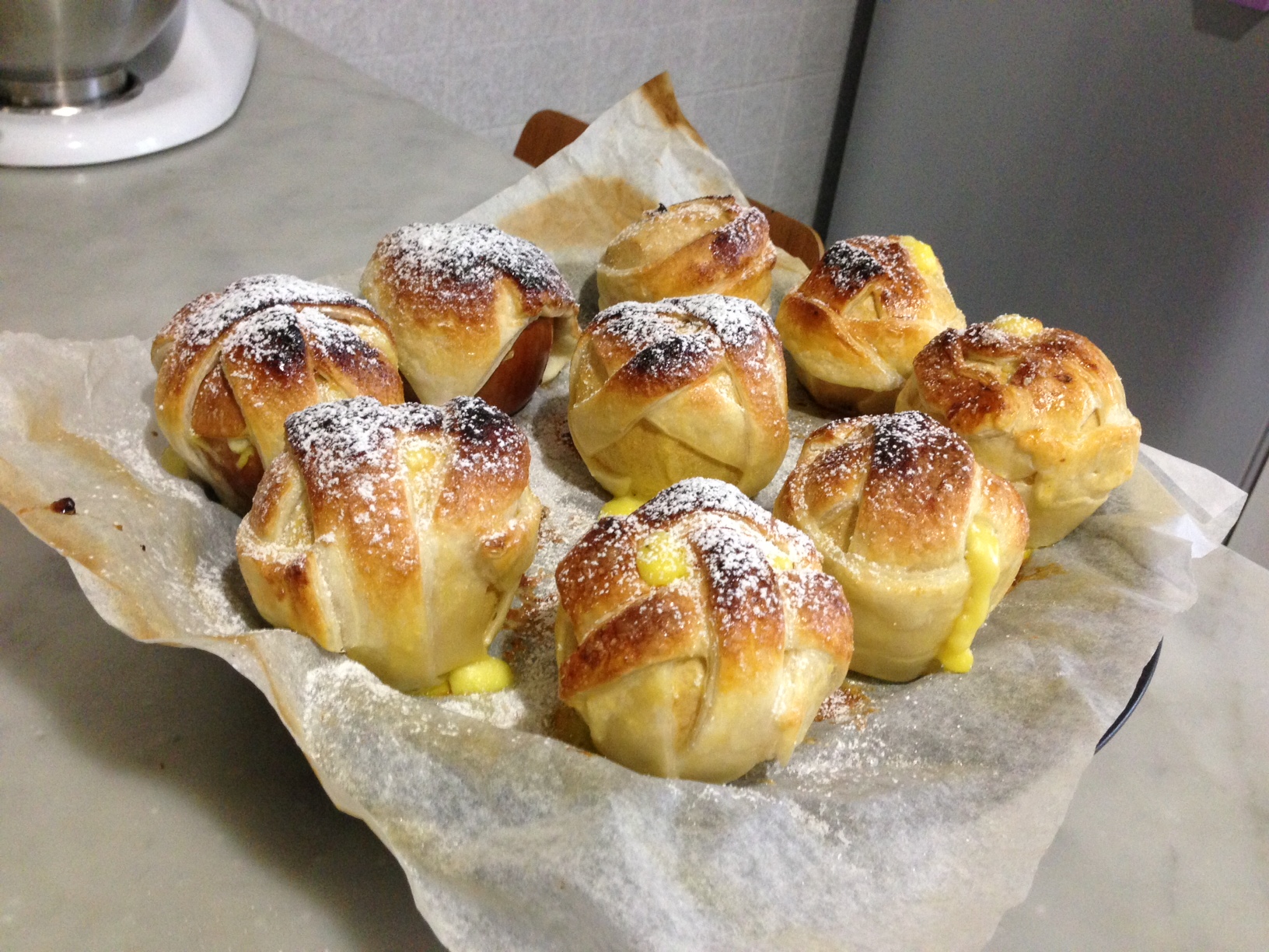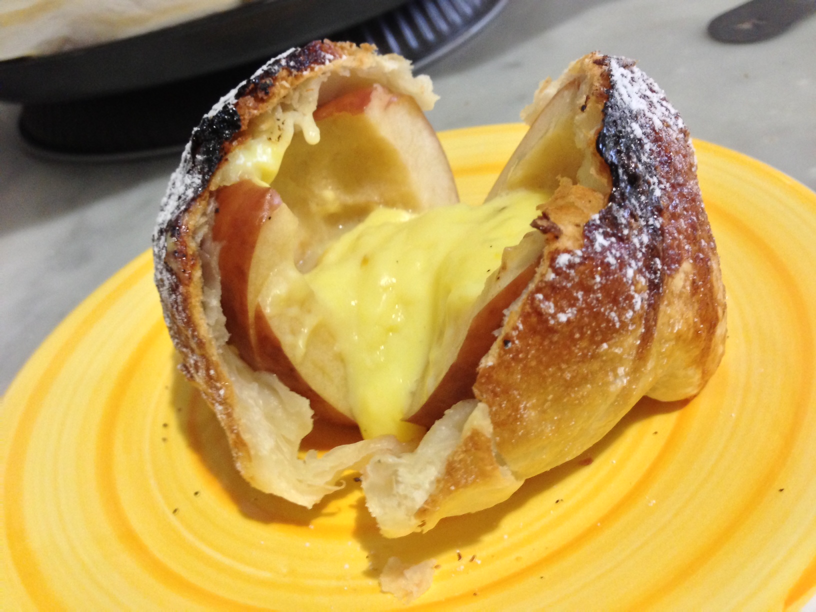 Cotte brevemente a Vapore dopo essere state scavate… Farcite di crema pasticcera e Ricoperte da lembi di pasta sfoglia… Facilissima idea dolce!