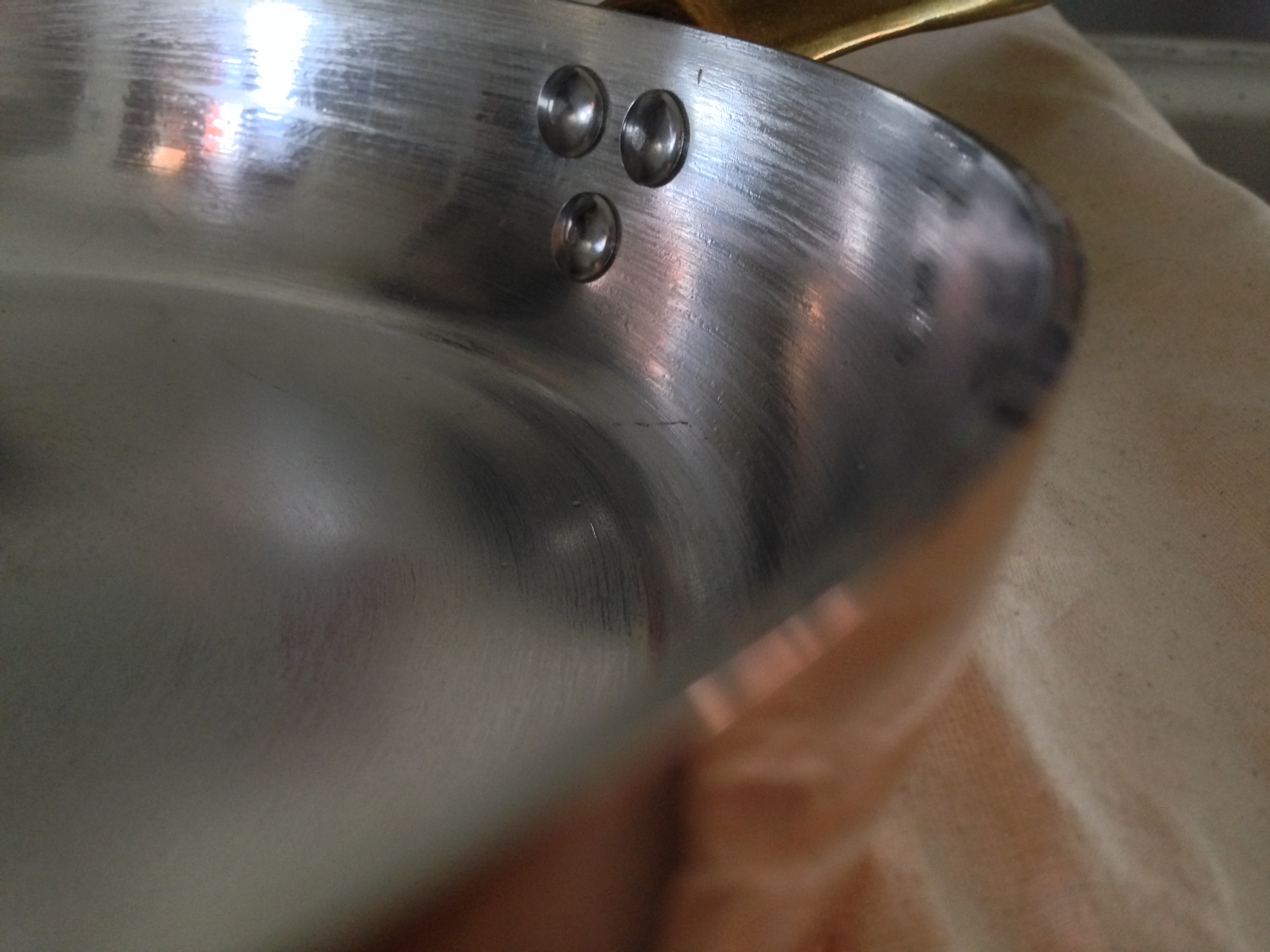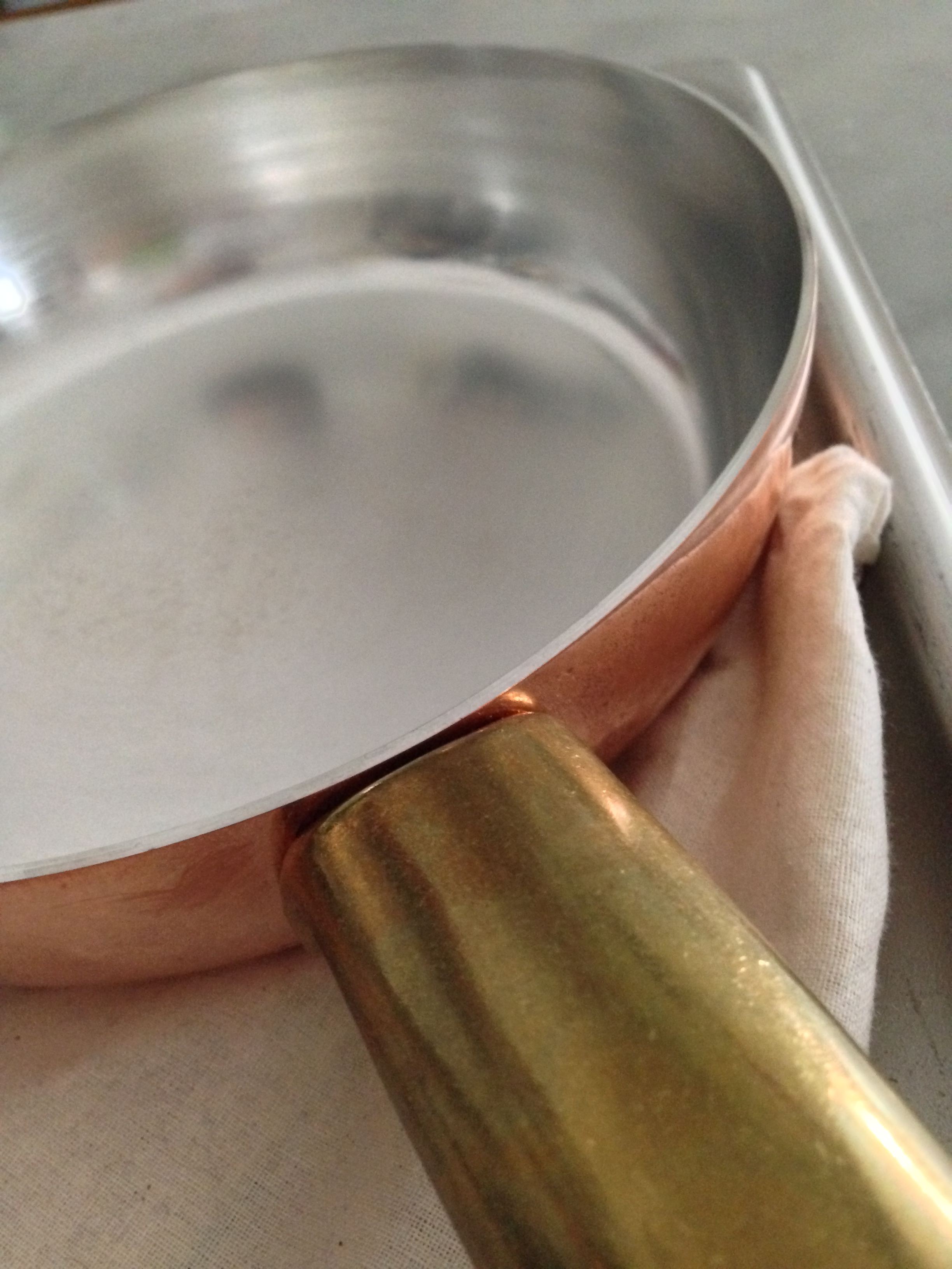 Quella con il rame, per gli chef, è una specie di romantica infatuazione che rimanda alla “vecchia scuola” della cucina. Naturalmente se con il pentolame in alluminio si può essere anche meno concentrati… (l’alluminio è più versatile e perdona le sviste del cuoco che fa tante lavorazioni contemporaneamente), il rame NON perdona! Se non si sta attenti e non si dosa la fiamma millimetricamente, sono guai…
