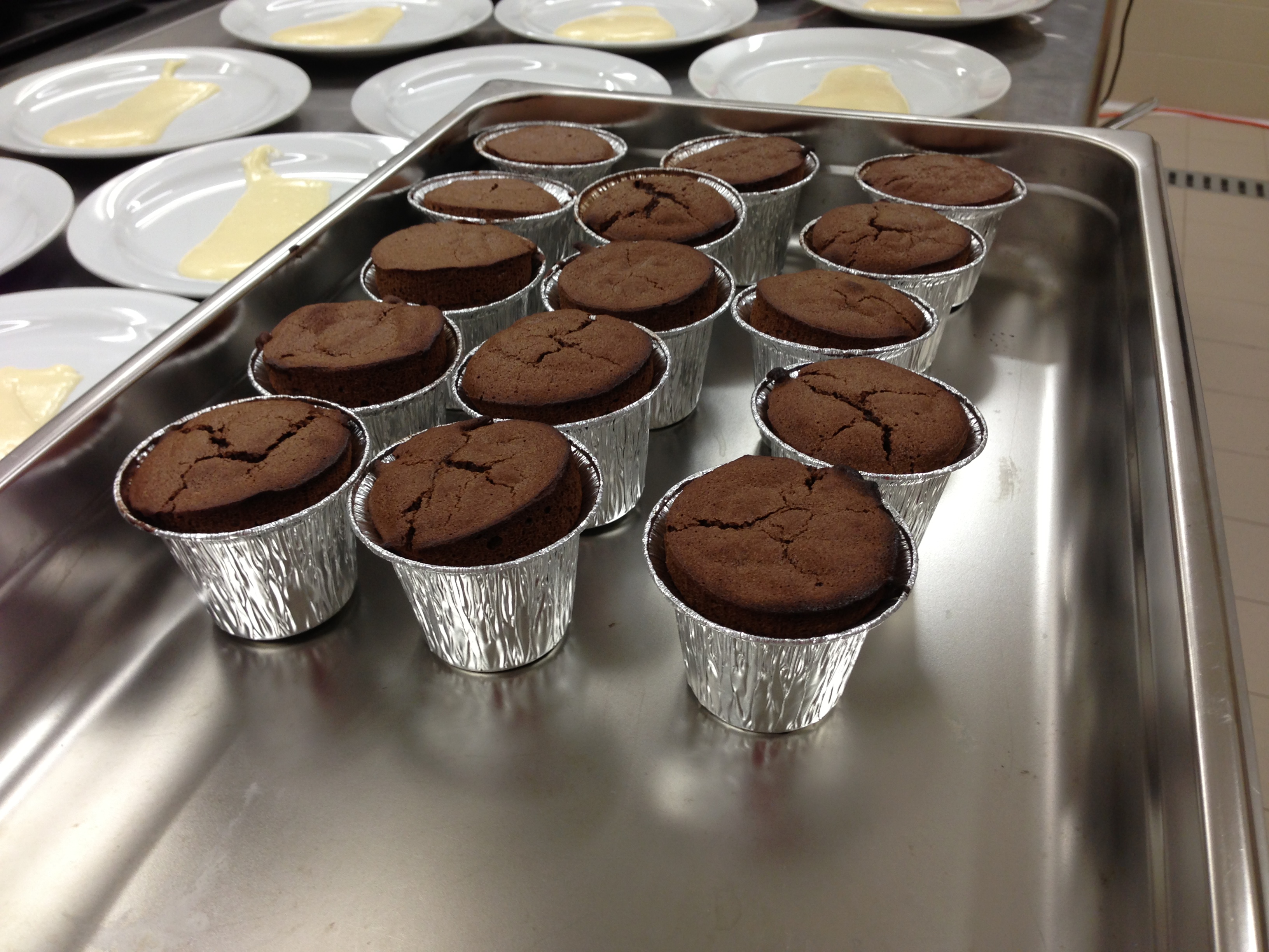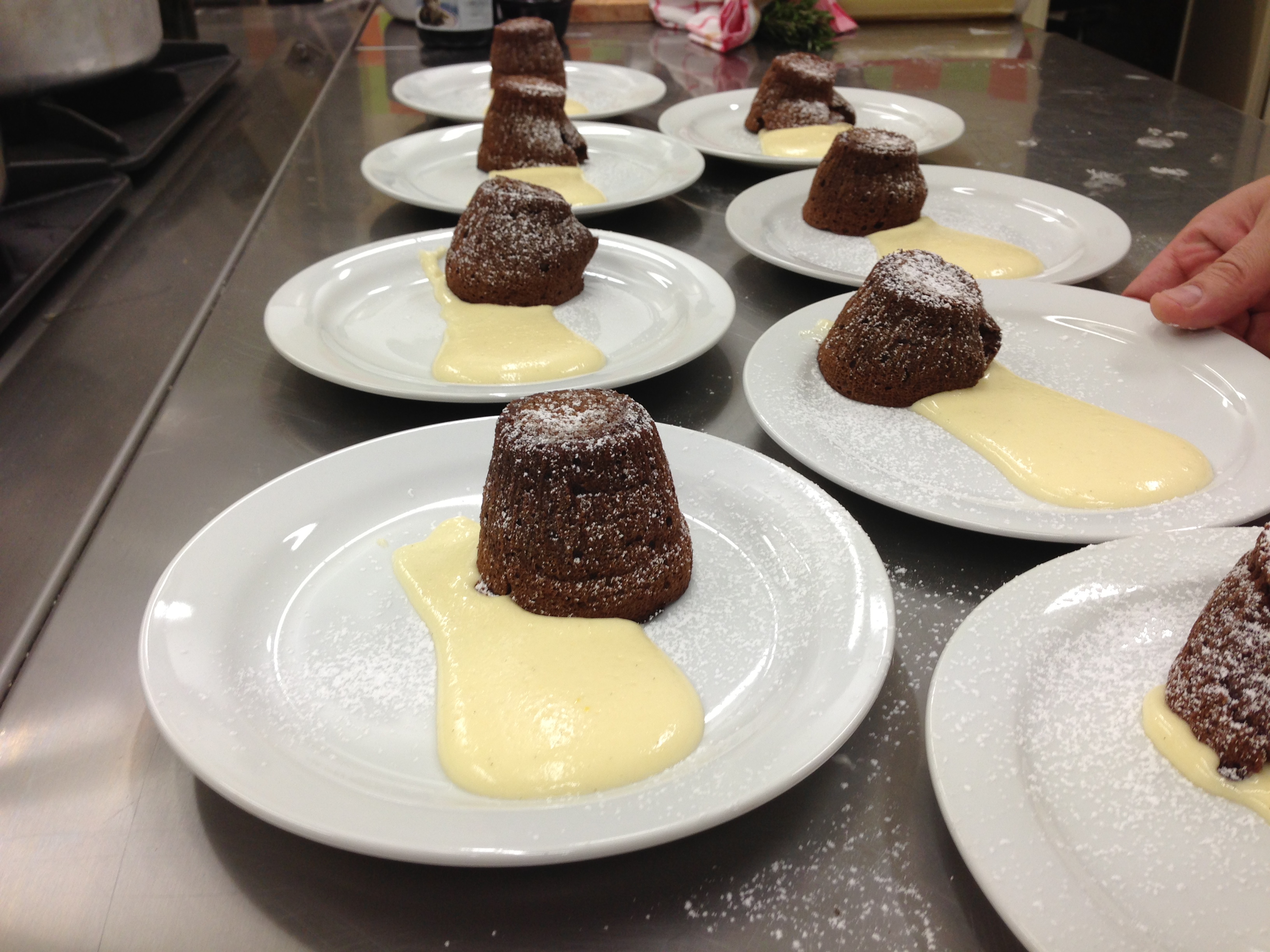 Servire su un goccio di crema inglese, magari con una pallina di gelato (alla crema o magari al caffè). La cosa stupenda è il cuore cremoso ed il fatto che quando si sformano danno l’idea di qualcosa che stà per esplodere… e appena si taglia col cucchiaio scende un fiume di cioccolato.