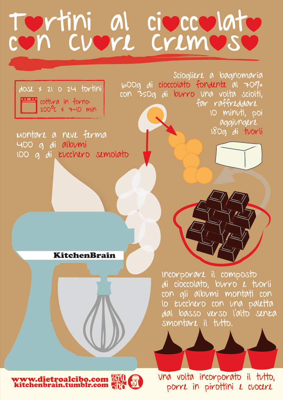 Questa ricetta è stupenda. Tortini a prova di errore. L’unica accortezza è non smontare il tutto quando si mixano i due composti. Il tortino al cioccolato (quasi un fondant) è fantastico per una cenetta speciale per la persona che si ama, ma anche per una cena per tante persone, o un dolce pronto all’ultimo minuto.