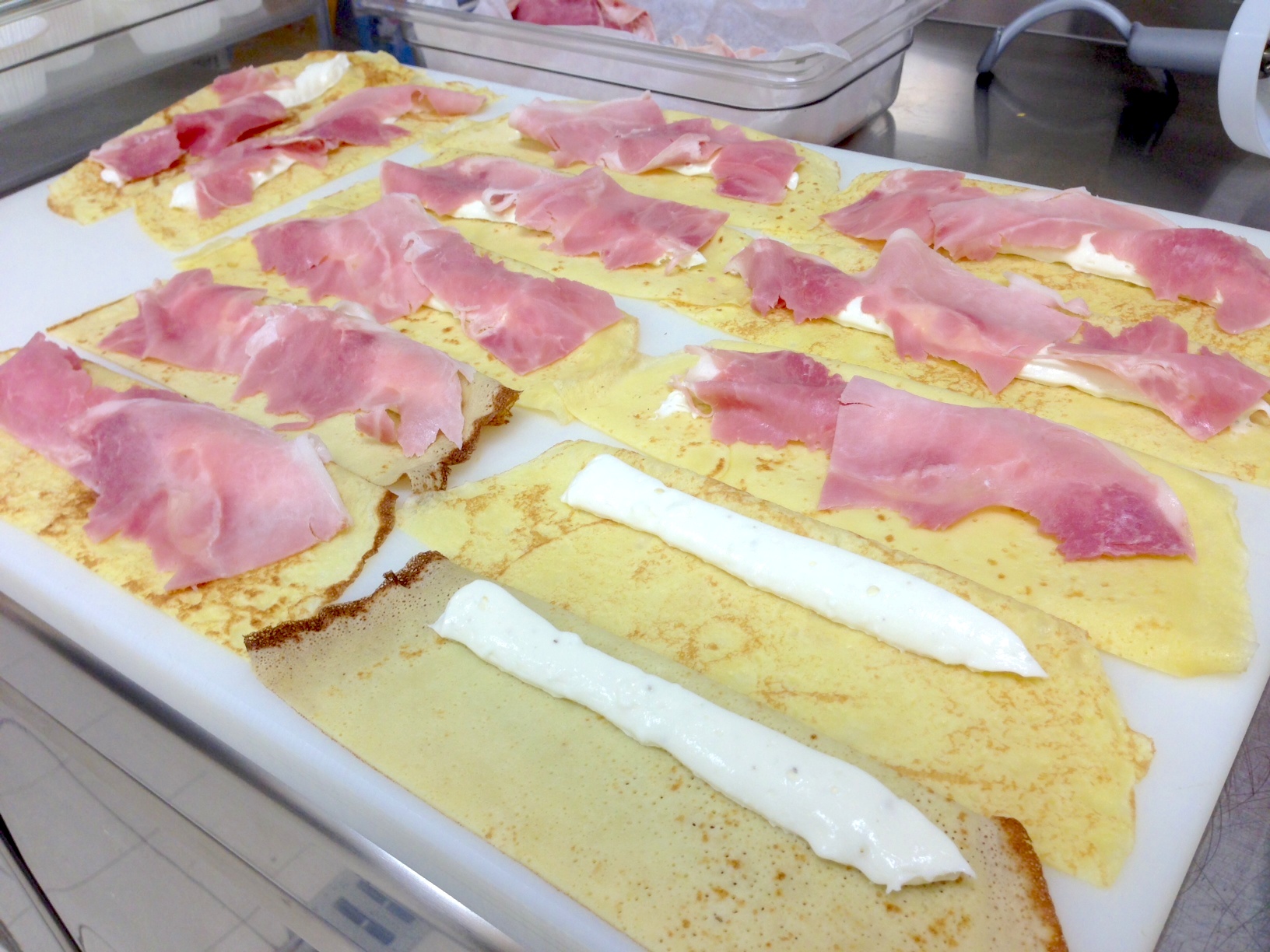 Come farcitura ho usato crescenza montata alle erbe aromatiche e prosciutto cotto