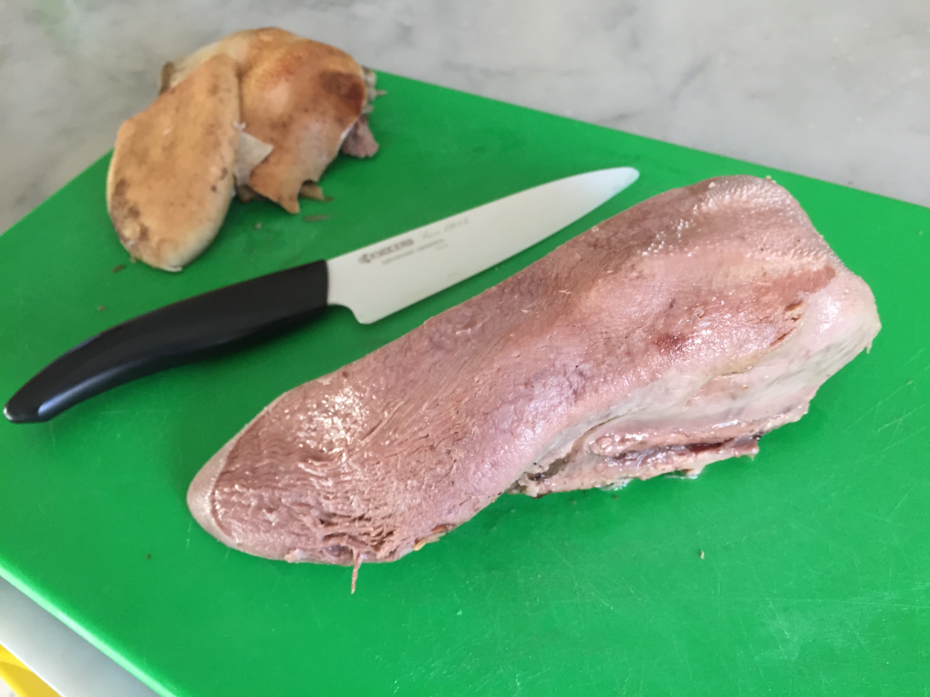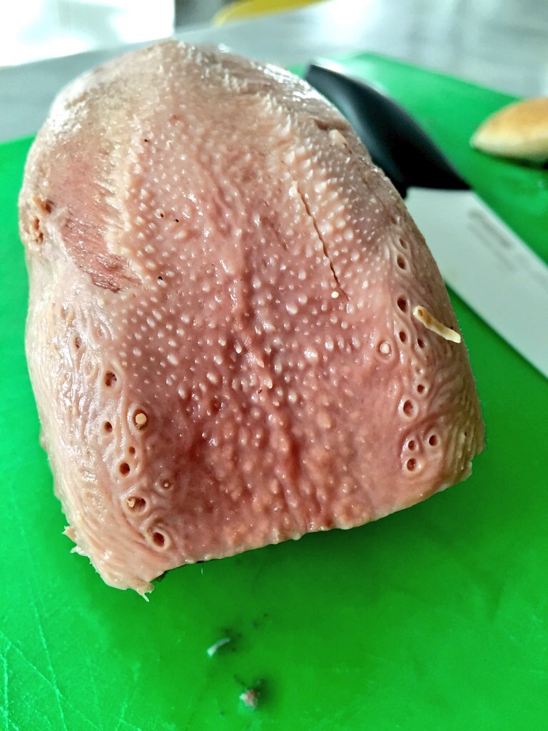 Tolta dal sacchetto e sciacquata senza esagerare, ho pelato la lingua e già la facilità nel togliere la pelle mi faceva presagire la morbidezza delle sue carni.