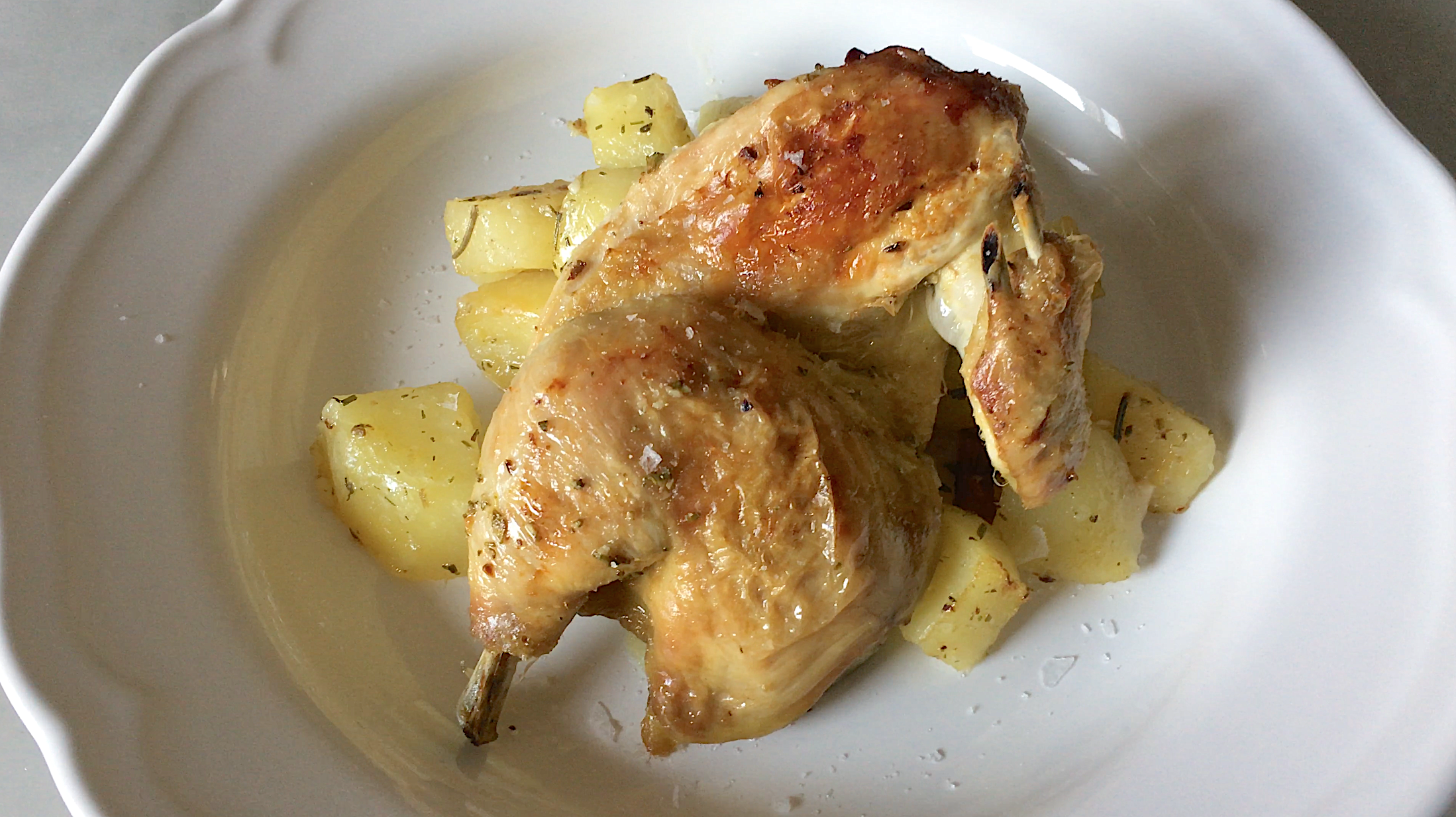 Per far andare d’accordo la cottura del galletto e delle patate dobbiamo usare un trucco, ossia precuocere velocemente le patate in microonde. Quindi le fasi sono: