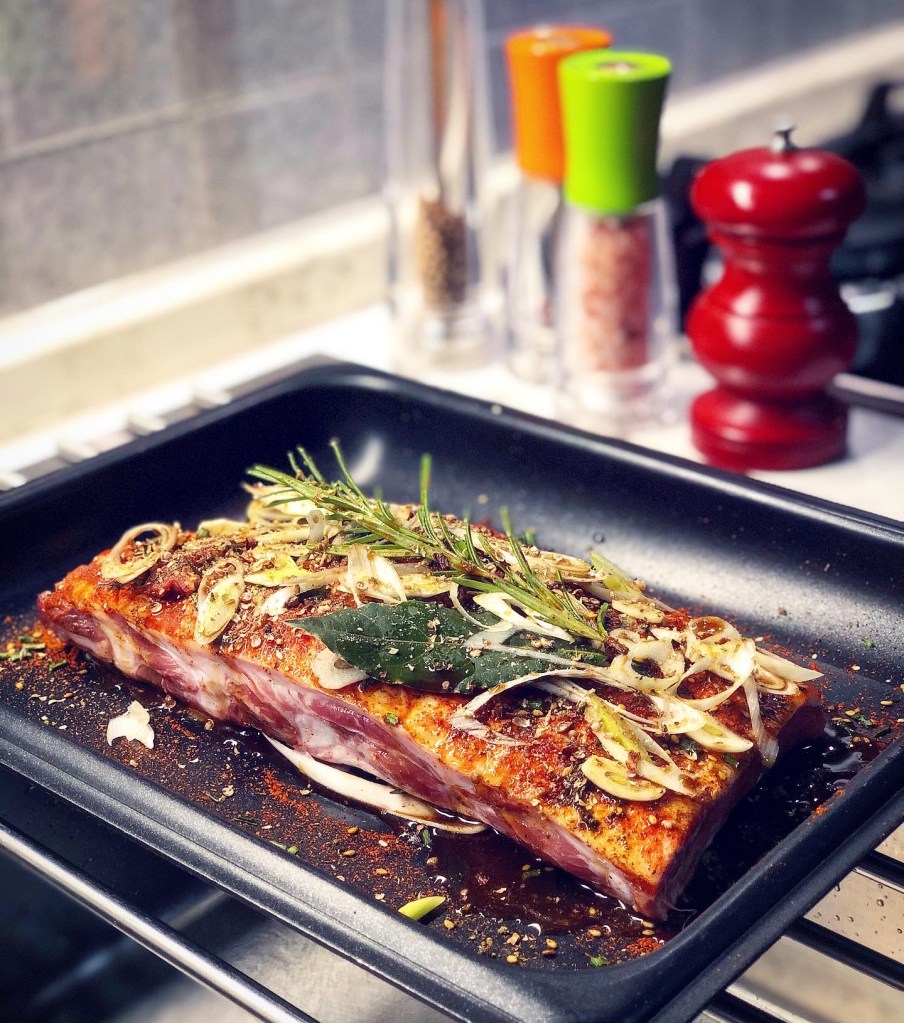 Come vedete nell’immagine a lato, ho messo a marinare a secco le costine con tutti questi aromi e spezie almeno una mezza giornata prima.