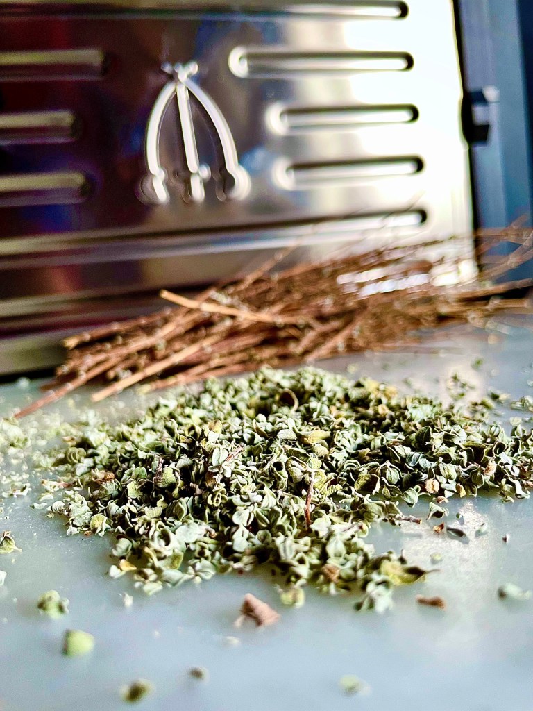 Proprio per questo, ho pensato che, anche se per un solo mazzetto di origano, fosse perfetto ricorrere all’essiccatore. Non solo perchè non ho un posto adatto ad essiccare in modo naturale per via dei ragni; ma pensandoci bene, il tempo da noi, anche quando è caldo, ha comunque un +60% di umidità di media. Sembra caldo, ma non è sufficiente ad essiccare per bene il nostro origano. Mi ricordo che anche da piccolo, dai nonni, facevamo sempre fatica ad essiccare anche la camomilla che raccoglievamo nei nostri terreni dietro casa. La Lomellina non si presta molto ad essiccare.